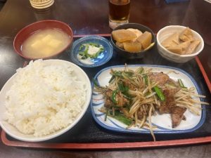 夜はとんちゃんが安くておいしいのですがランチはなんと800円でメインを選びおばんざいが2品つくのです、このおばんざいが10品ぐらいある中からセルフで量は自分の食べれる分です(ということはいっぱい入れてもOK)